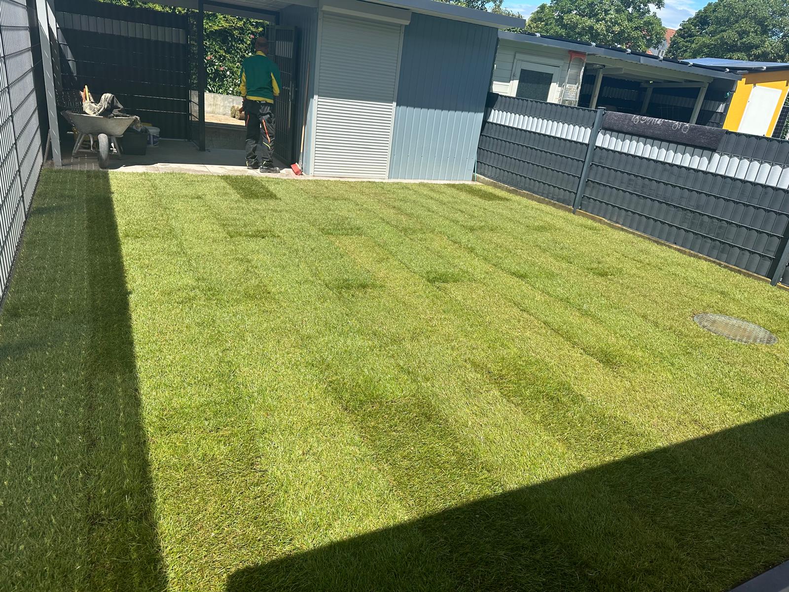 Schneller Traumrasen: Rollrasen-Verlegung für Privatgarten & Firmengelände.